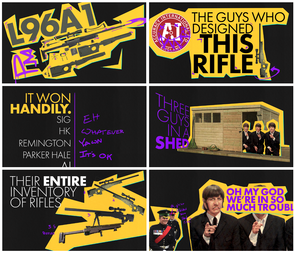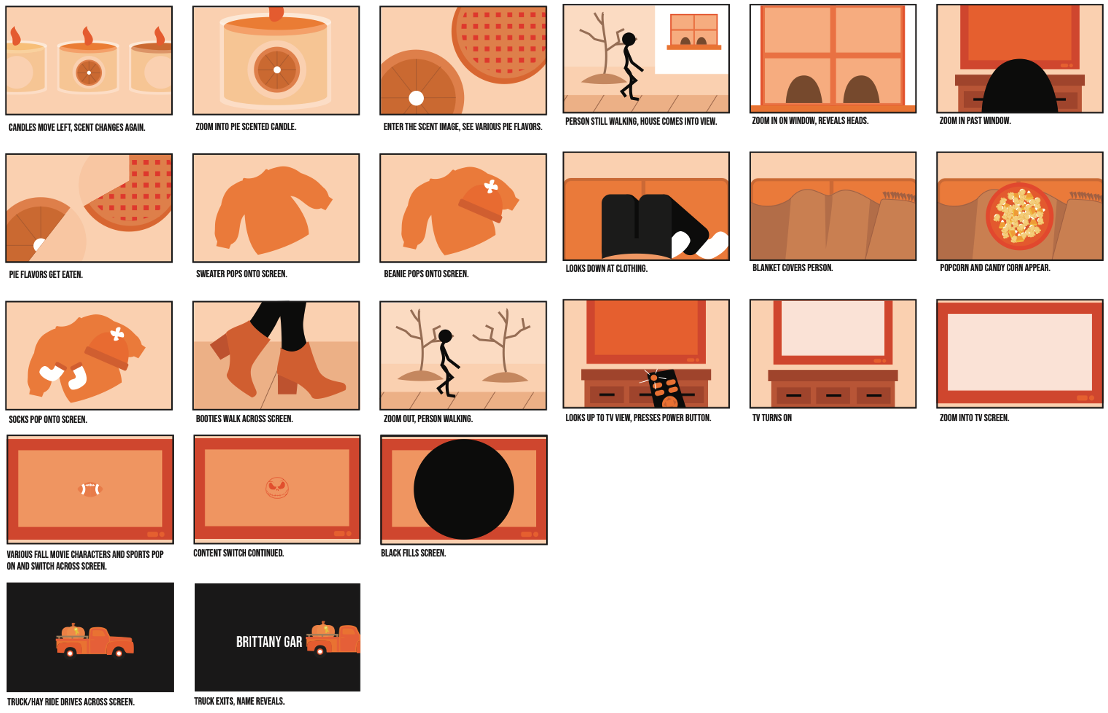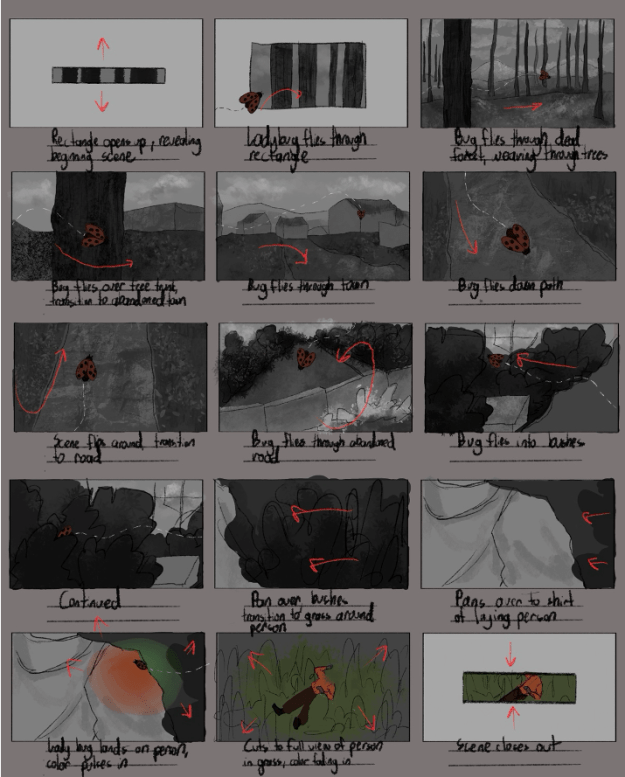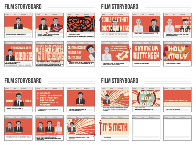 Usually, when you are pitching a project idea to a client, you will show these more final style frame storyboards.