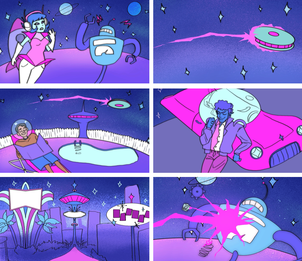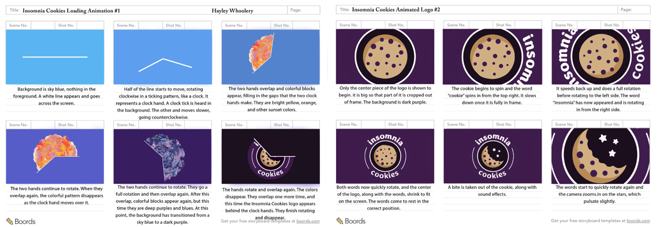 Create four complete style frames for your Animated Logo and two style frames for your Loading Animation. Illustrate the most significant moments from your storyboard and refine them so that they are in the correct aspect ratio and present what the finished animation will look like.